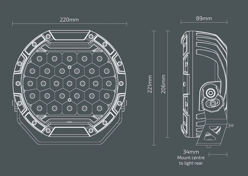 Illuminate your path with the NOXSOLIS NX930 8.5″ LED Driving Light, featuring dual-colour front position lights for added visibility. Designed for both on-road and off-road applications, this driving light offers a powerful combo beam and versatile front position lighting options.